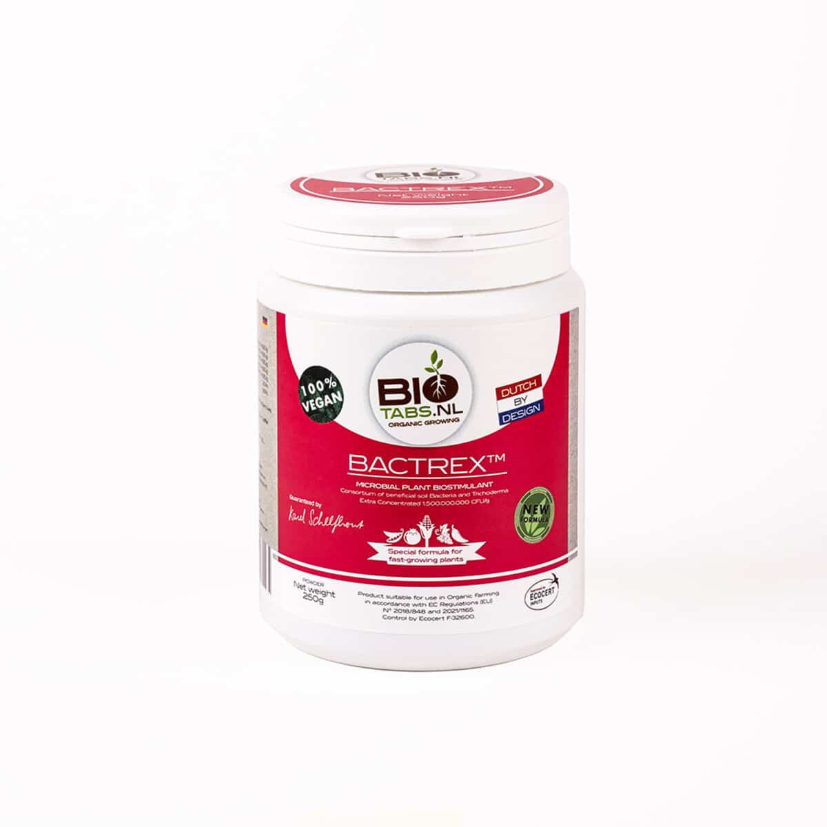 BioTabs Bactrex er et biologisk produkt fra BioTabs udviklet til at styrke planternes rodsystem og forbedre jordens mikrobiologi.