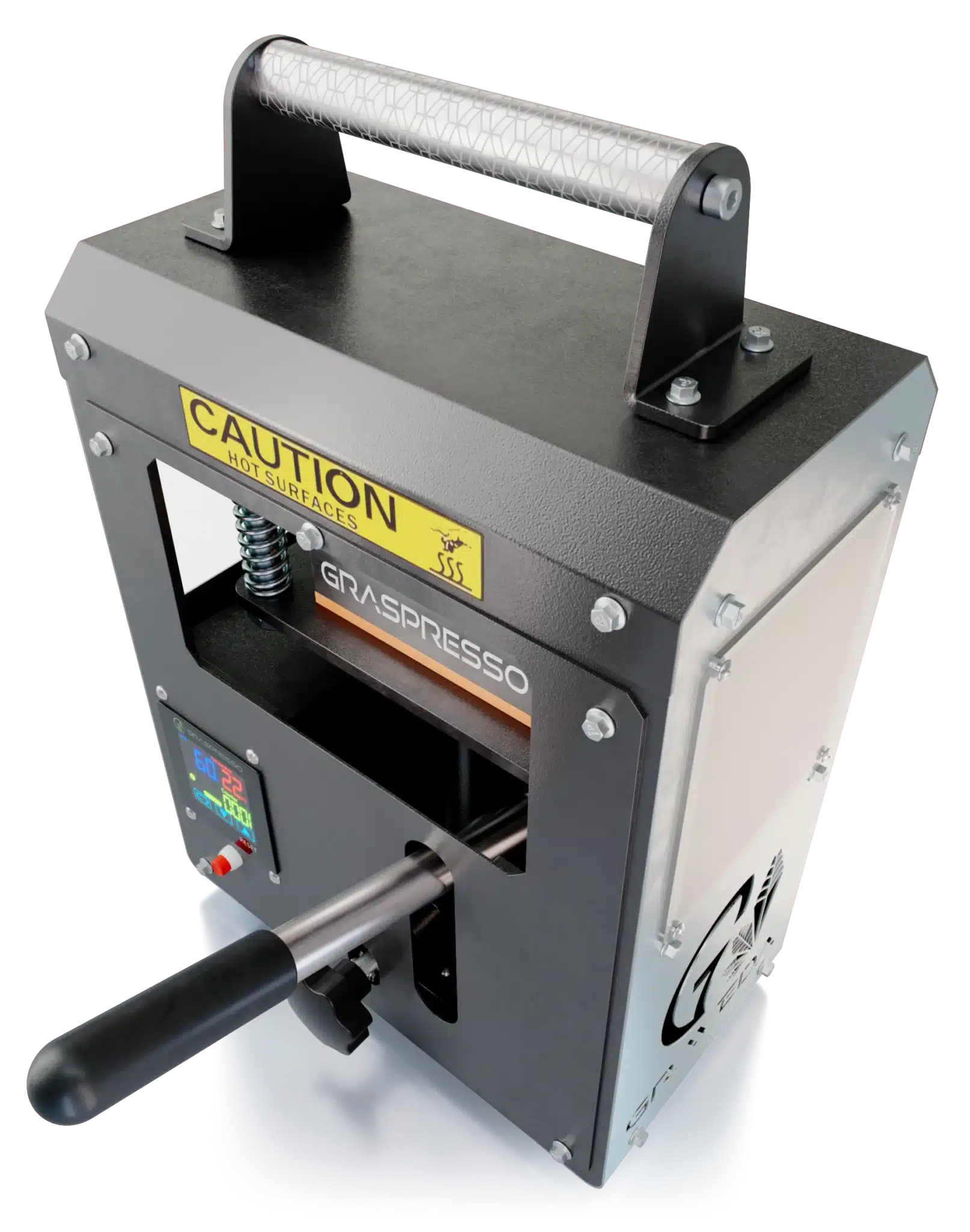5 ton hydraulisk rosin presse med 12 x 6 cm varmeplader og præcis temperaturstyring fra 0–150°C. En stærk allround-model til solventfri ekstraktion af Budder, Live Rosin og Shatter – perfekt til både begyndere og seriøse hjemme-extractors.